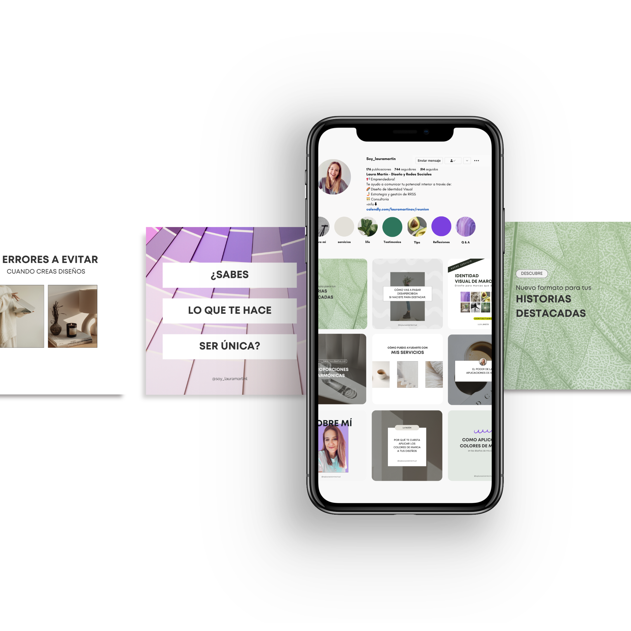 Diseño de plantillas con tu identidad visual específicas para tu estrategia de comunicación en RRSS (historias, destacados, reels, carruseles, feed).